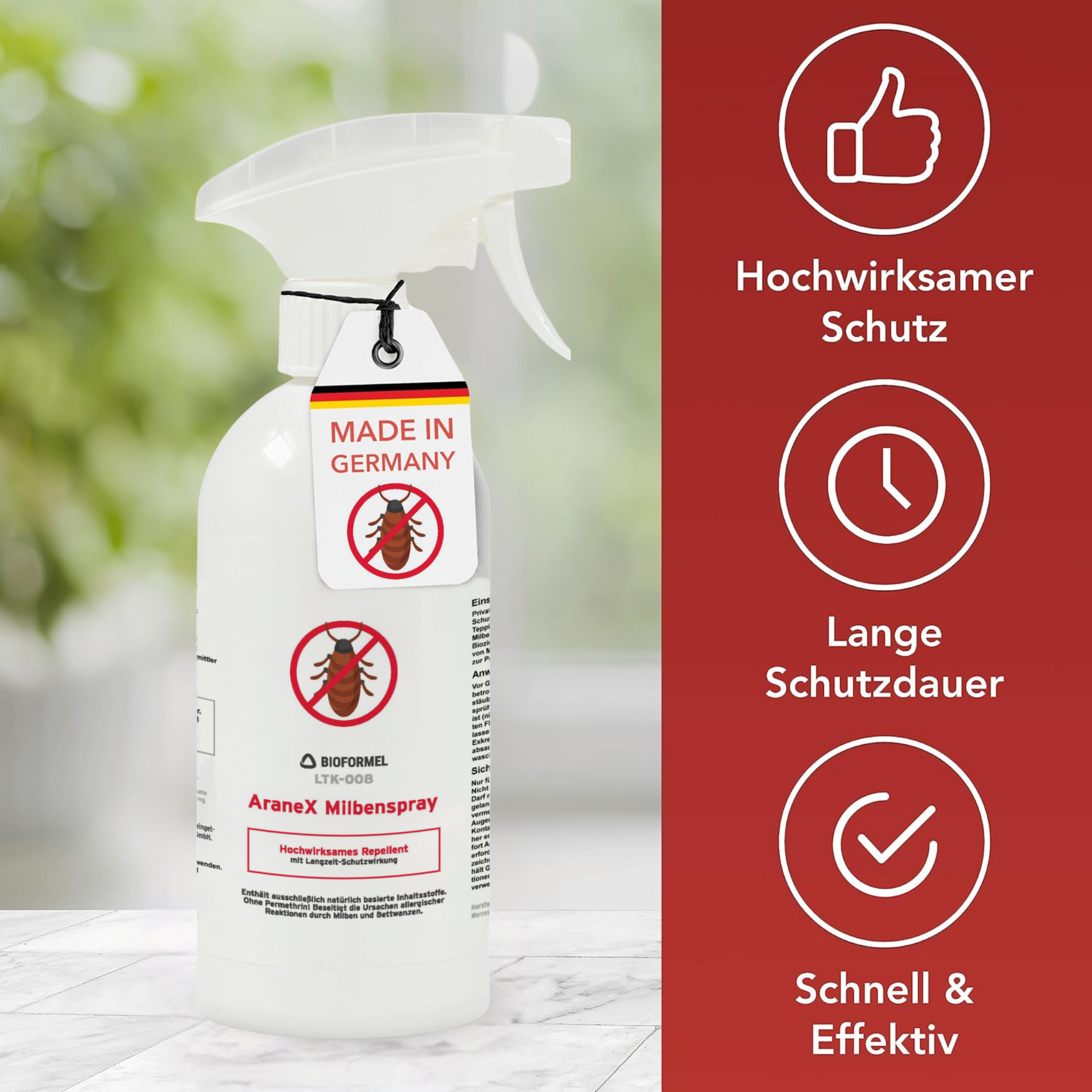 Das Spray wirkt zuverlässig gegen Hausstaubmilben, Bettmilben und andere mikroskopisch kleine Milbenarten, die sich in Wohntextilien einnisten.